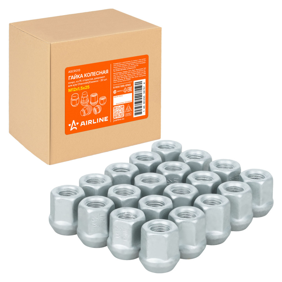 гайка колесная AIRLINE M12x1,5x25, конус, кл.19, открытая, дакромет для а/м Chevrolet/Daewoo ASCR013