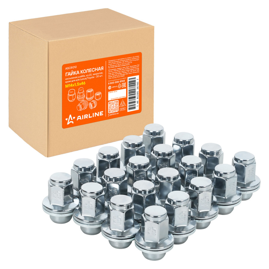 гайка колесная AIRLINE M14x1,5x46, несъемная шайба, кл.22, закрытая, хром для а/м Lexus/Toyota ASCR012