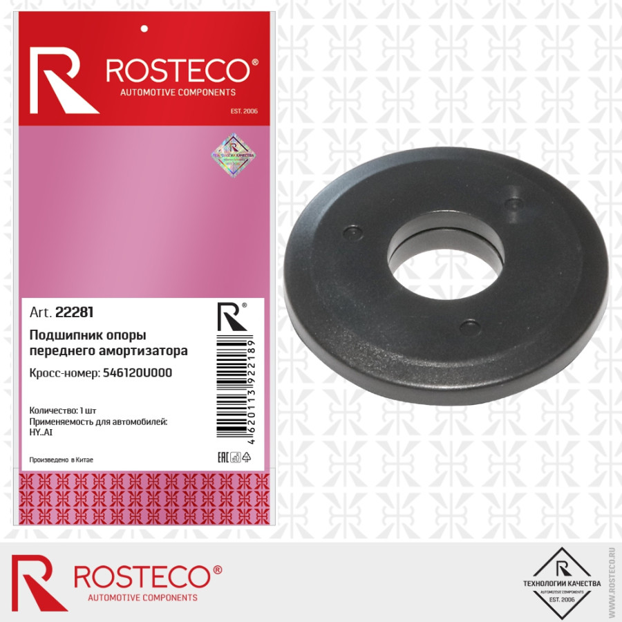 подшипник опоры стойки РОСТЕКО для а/м Hyundai Solaris (10-) перед. в упак. 546120U000 арт. 22281