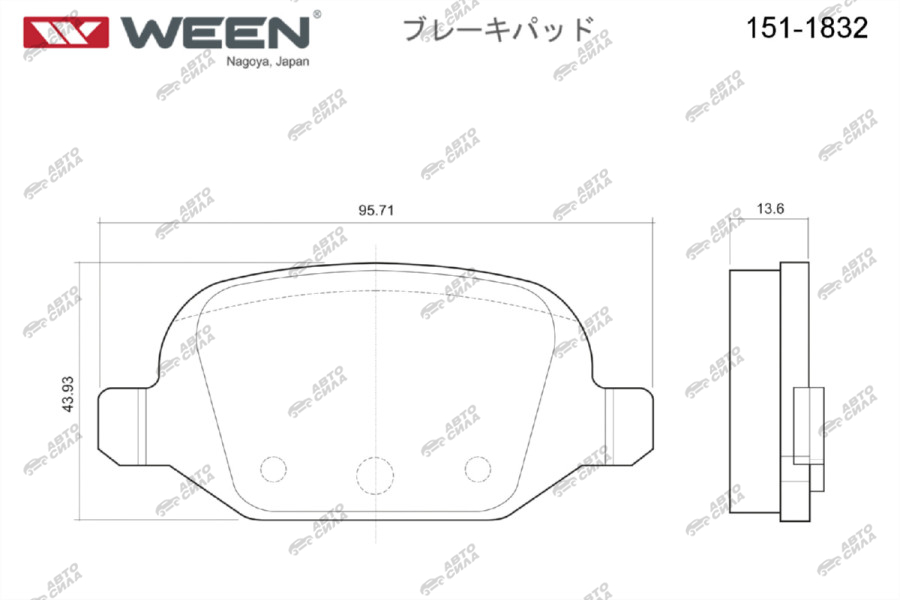 колодка WEEN для а/м Lada Vesta/SW/SW Cross/ Kalina Sport/ Granta Sport задняя 151-1832 (8450102888)