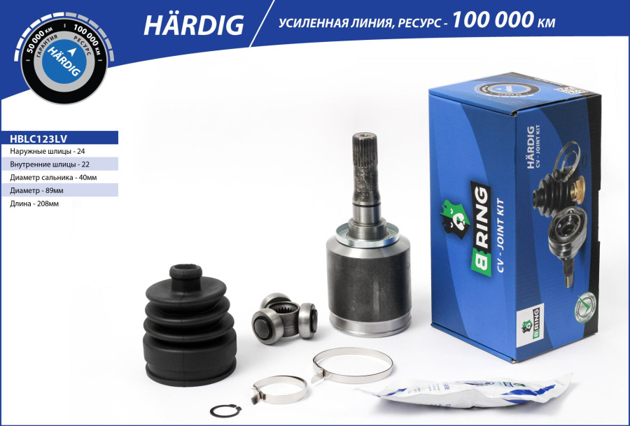 B-RING - производитель высококачественных автомобильных запчастей, специализируется на разработке и производстве всех типов подшипников и ШРУСов для легковых автомобилей и микроавтобусов. Миссия B-RING - предлагать клиентам продукцию высокого качества по самым выгодным ценам. Основным приоритетом является качество продукции, поэтому компания постоянно инвестирует в производственные процессы и строгий контроль качества, испытания изделий производятся в реальных условиях эксплуатации! ШРУСы B-ring производятся из отборных материалов, проходят многие специально разработанные процедуры и несколько тестов перед тем, как попасть к покупателю. HÄRDIG - премиум-линейка товара, заводская гарантия составляет два года или 50 000 км, расчетный ресурс 100 000 км.