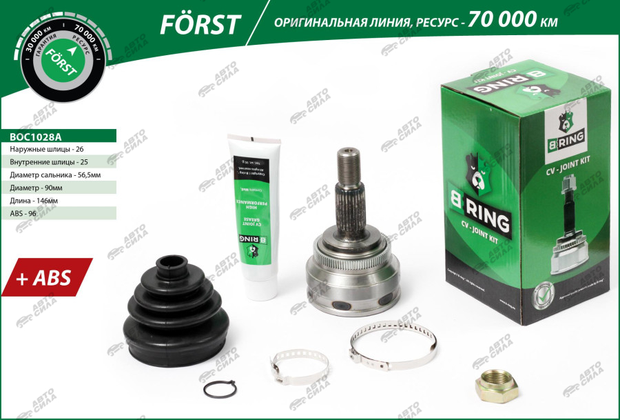 B-RING - производитель высококачественных автомобильных запчастей, специализируется на разработке и производстве всех типов подшипников и ШРУСов для легковых автомобилей и микроавтобусов. Миссия B-RING - предлагать клиентам продукцию высокого качества по самым выгодным ценам. Основным приоритетом является качество продукции, поэтому компания постоянно инвестирует в производственные процессы и строгий контроль качества, испытания изделий производятся в реальных условиях эксплуатации! ШРУСы B-ring производятся из отборных материалов, проходят многие специально разработанные процедуры и несколько тестов перед тем, как попасть к покупателю. FÖRST - оригинальная заводская линейка товара, гарантия составляет один год или 30 000 км, расчетный ресурс 70 000 км.