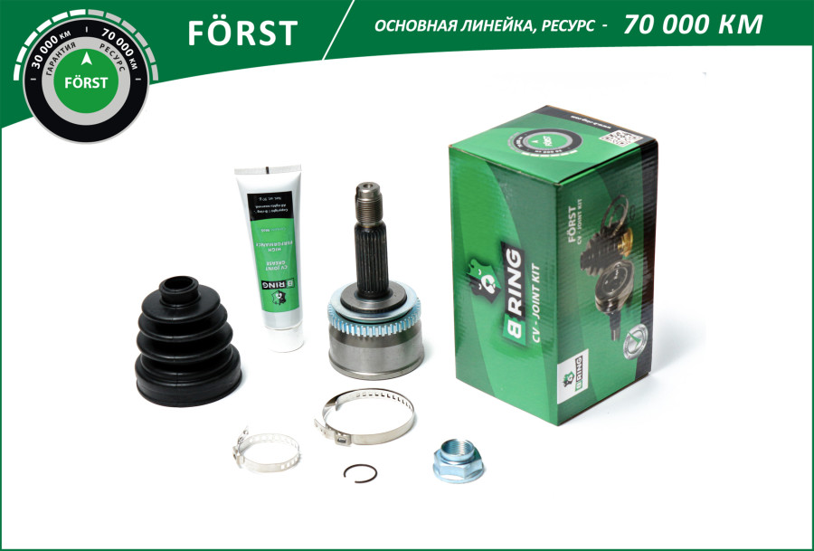 B-RING - производитель высококачественных автомобильных запчастей, специализируется на разработке и производстве всех типов подшипников и ШРУСов для легковых автомобилей и микроавтобусов. Миссия B-RING - предлагать клиентам продукцию высокого качества по самым выгодным ценам. Основным приоритетом является качество продукции, поэтому компания постоянно инвестирует в производственные процессы и строгий контроль качества, испытания изделий производятся в реальных условиях эксплуатации! ШРУСы B-ring производятся из отборных материалов, проходят многие специально разработанные процедуры и несколько тестов перед тем, как попасть к покупателю. FÖRST - оригинальная заводская линейка товара, гарантия составляет один год или 30 000 км, расчетный ресурс 70 000 км.