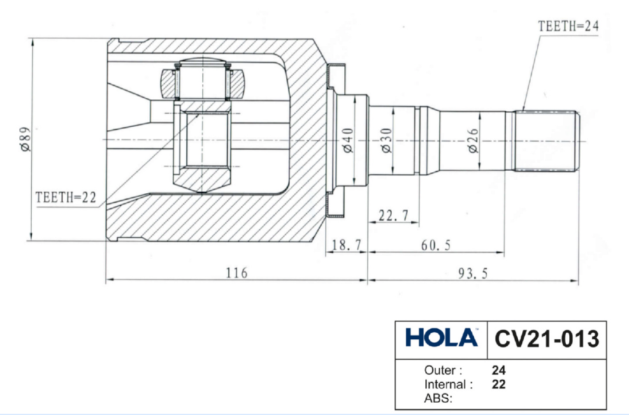 ШРУС HOLA для а/м 2123 Шеви Нива внутренний (трипоидный) левый CV21-013