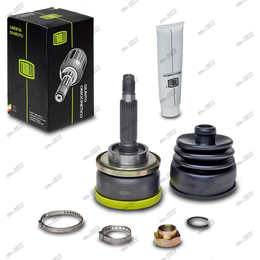 ШРУСы TRIALLI 2121 наружные GO 233 отличаются надежной защитой от износа, коррозии и других внешних воздействий. Комплектующие поставляются от ведущих европейских производителей, так что брак исключается.