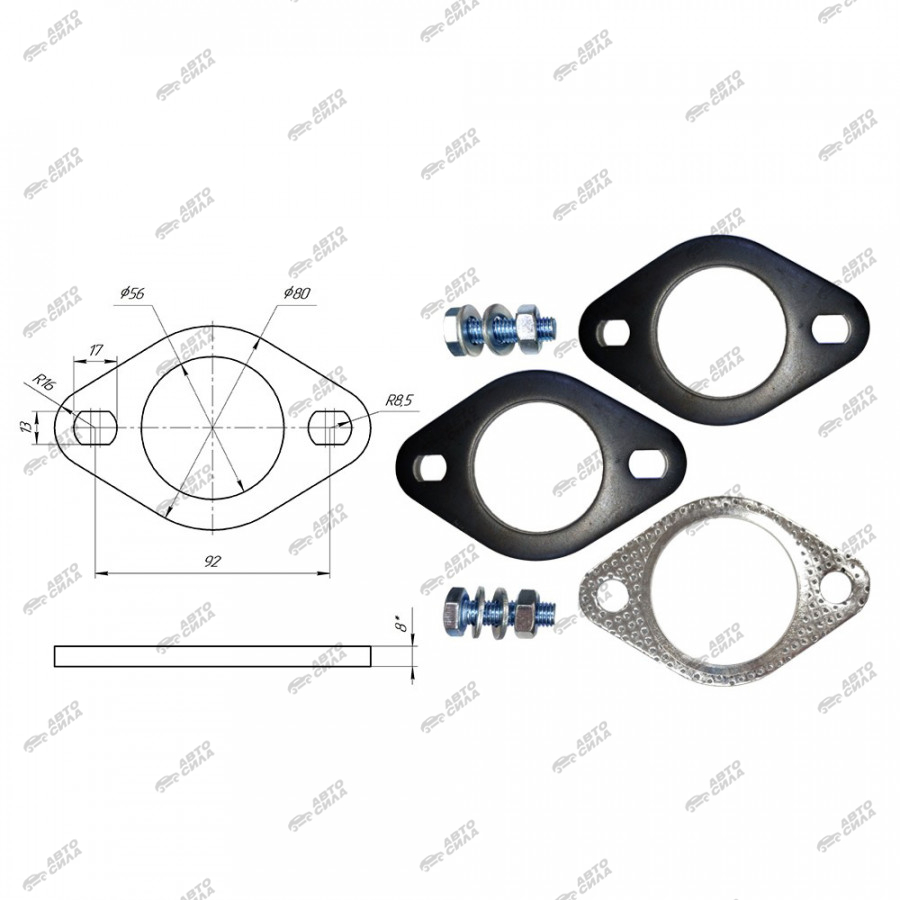 фланец CBD d55мм с прокладкой и стяжными болтами. CBD601.003