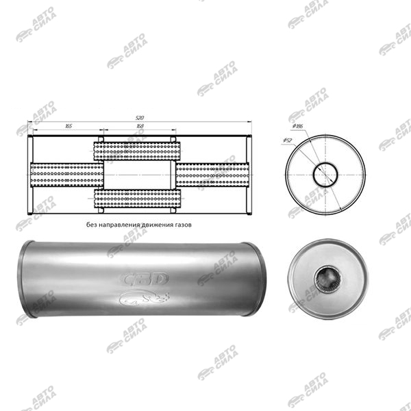 Глушитель CBD основной универсальный CBD430.020. нерж. сталь, Круг D186, L520. Отв. по центру, под трубу 50±2мм.