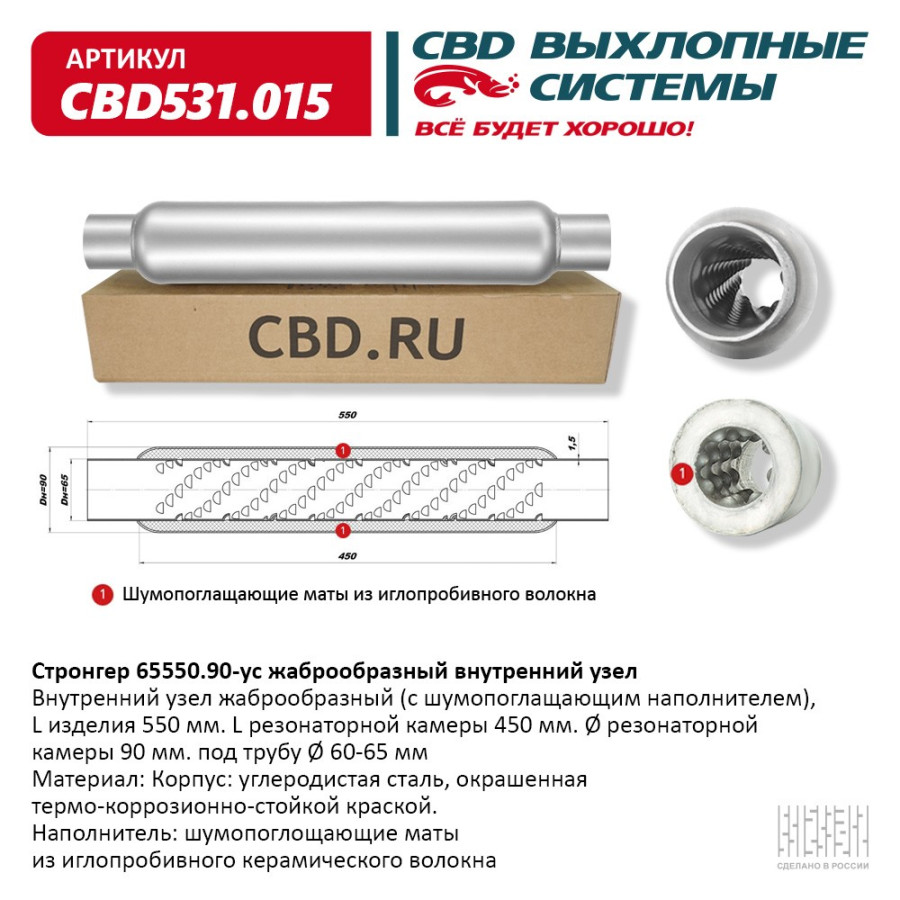 стронгер пламегаситель 65550.90 (d трубы 65, L550, d издел 90)мм жаброобр. внут.узел "CBD" CBD531.015