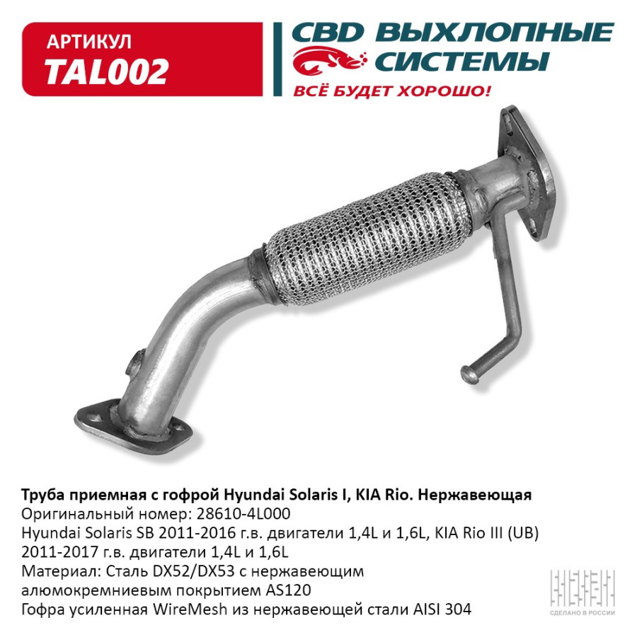 труба приемная CBD Solaris I, Kia RioIII, 28610-4L000 С. Петербург TAL002