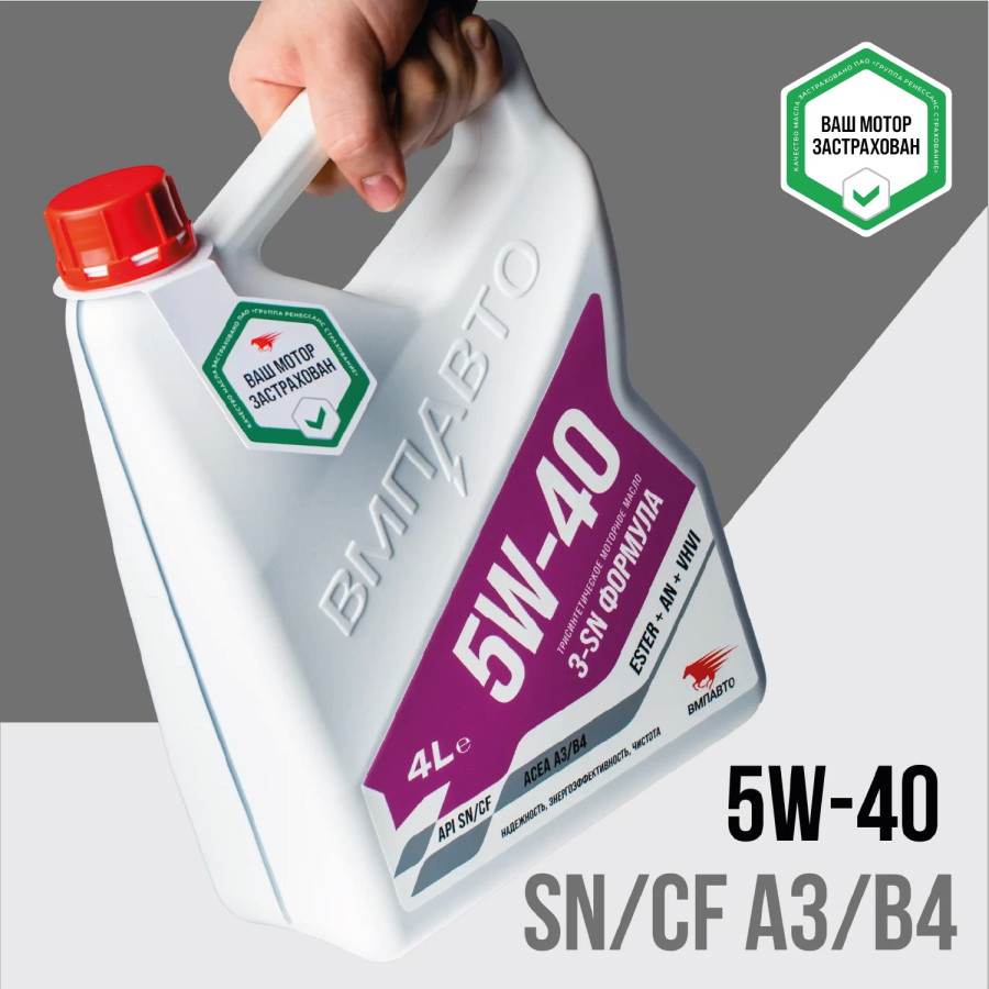 масло моторное ВМПАВТО 3-SN 5W-40 (A3/B4, SN/CF) синт. 4л 9223