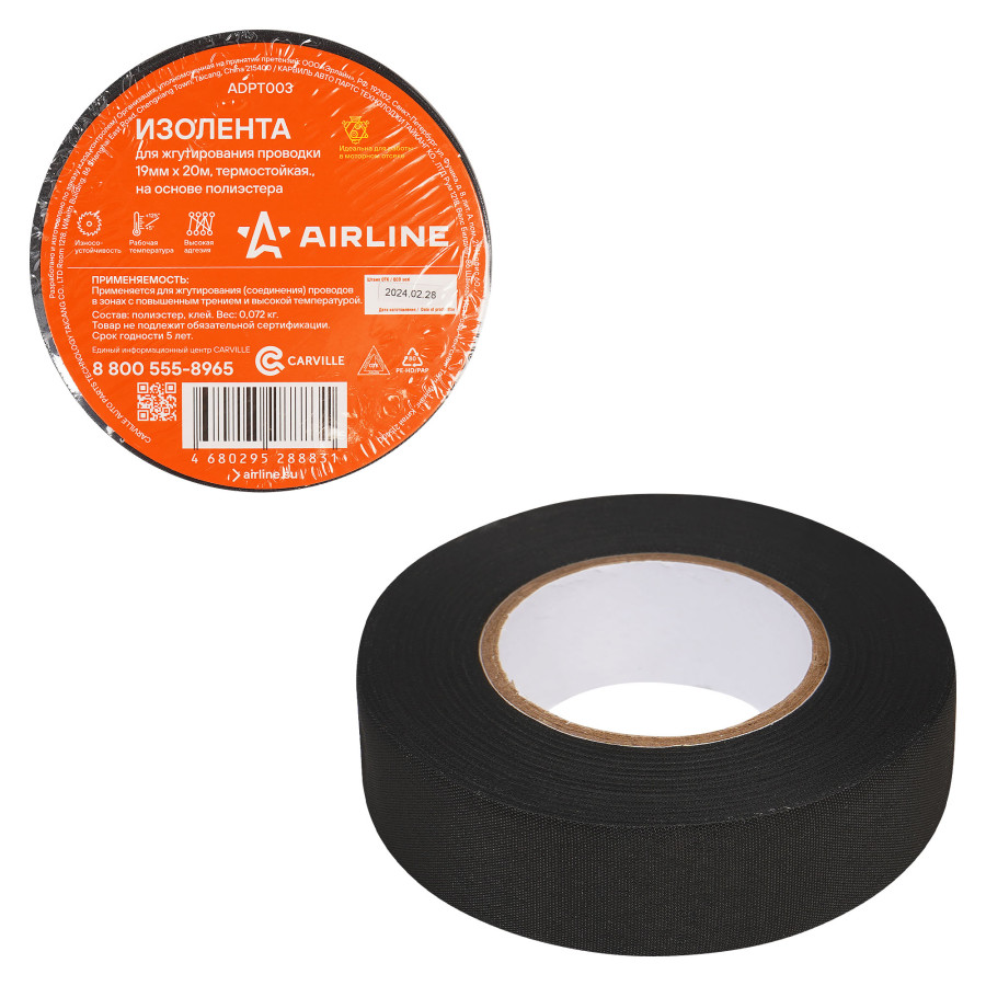 изолента AIRLINE для жгутирования проводки 19 мм*20 м, термостойкая., на осн.полиэстера ADPT003