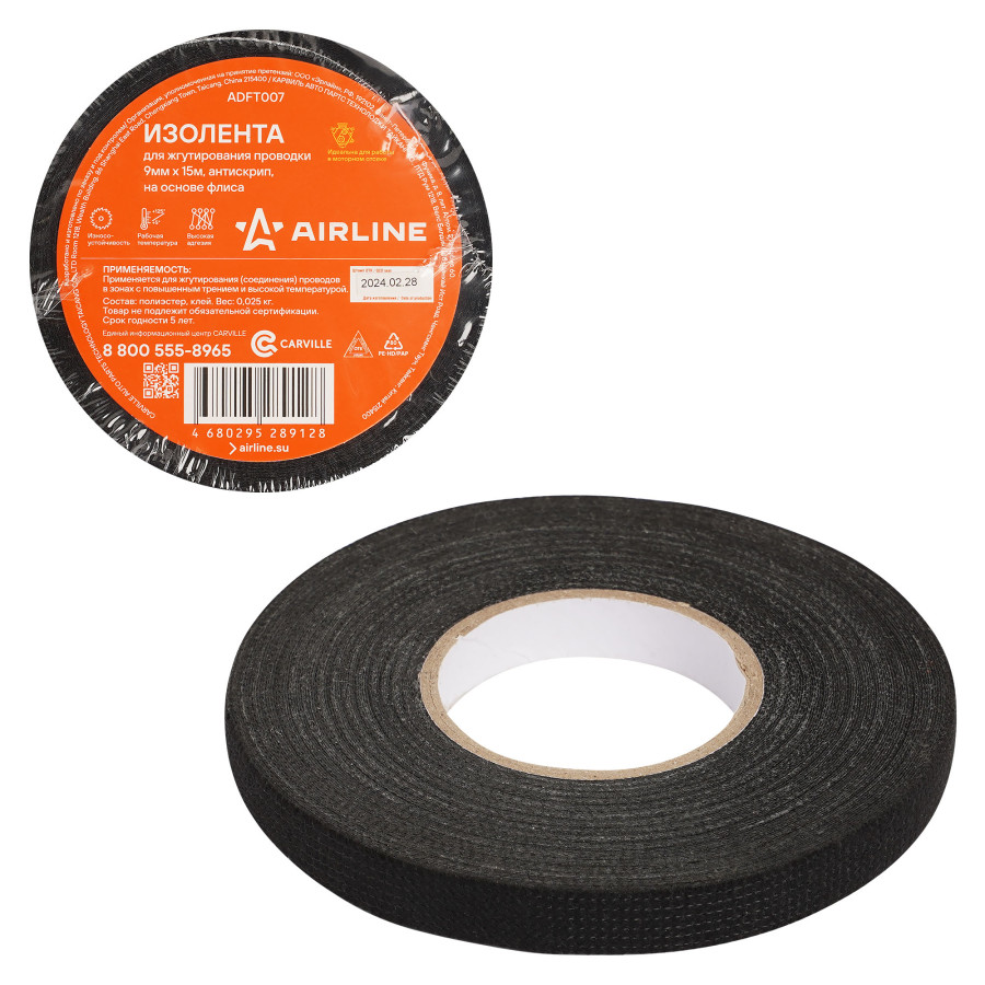 изолента AIRLINE для жгутирования проводки 9 мм*15 м, антискрип, на осн. флиса ADFT007
