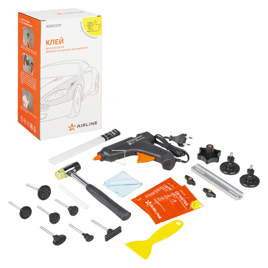 клей AIRLINE для ремонта вмятин (набор: полимер. 2 шт., салф. с растворителем 4 шт., вспомог.материалы) ADGC021