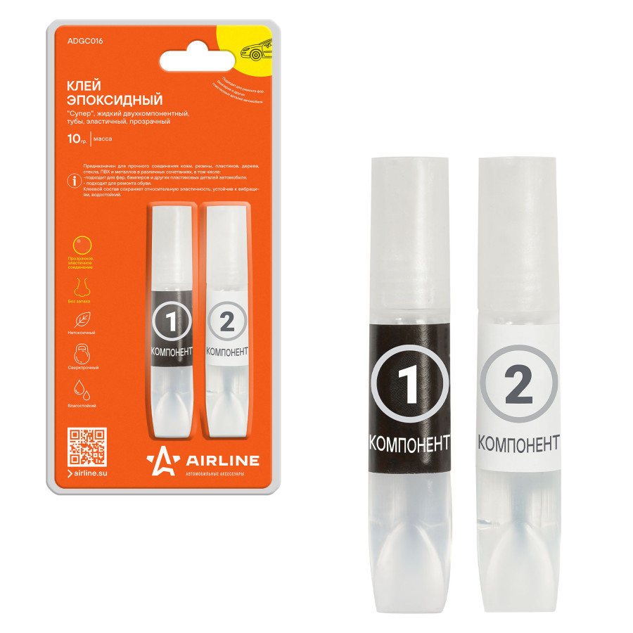 клей эпоксид. 2-х комп. AIRLINE "Супер", жидкий, тубы, эластичный, прозрачный, 10 г. ADGC016