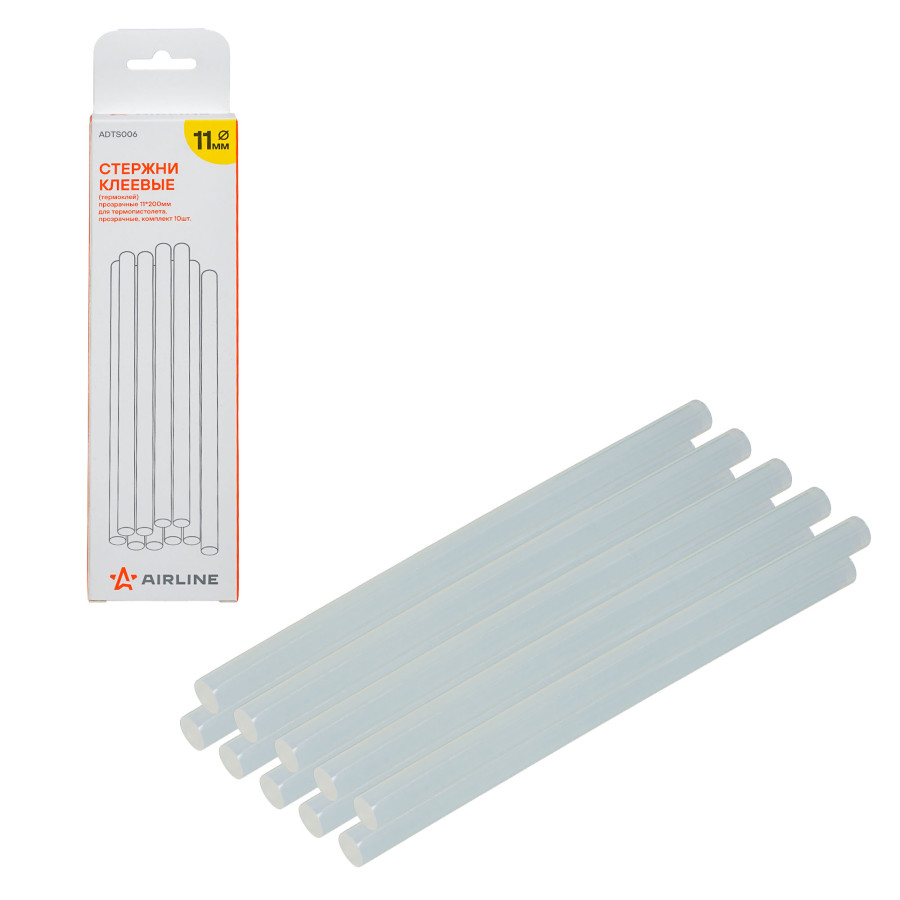 стержни клеевые (термоклей) AIRLINE 11*200мм для термопистолета, прозрачные, компл.10шт., коробка ADTS006