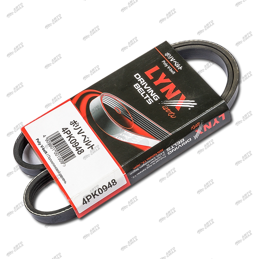Ремень LYNX 4PK948 поликлиновой (CHEVROLET Aveo, HYUNDAI Sonata 98-04, INFINITY FX35/45 , KIA Magentis 2.0 01>/Sorento 2.4 02>, SKODA Felicia 1.3)