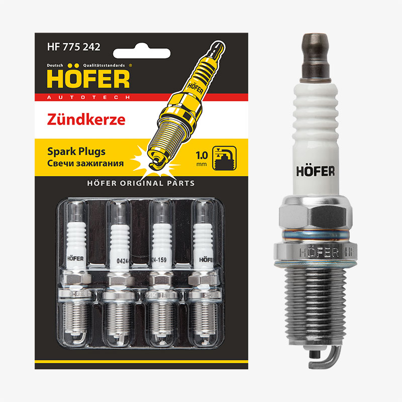 свечи HOFER для а/м ГАЗ/УАЗ с дв. ЗМЗ-405/406/409 (1мм, R, Cu, ключ 16) (блист. 4 шт.) (ан.BCPR5ES-11) HF 775 242
