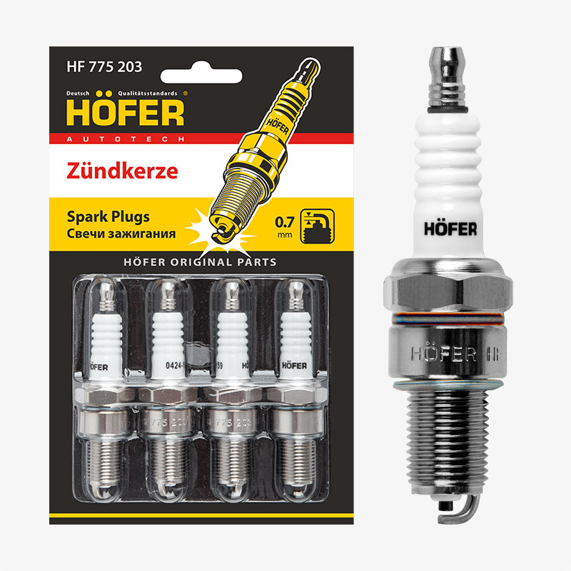 свечи HOFER для а/м LADA 2101-2107 карб. (0,7мм) (блист. 4 шт.) (ан.BP6ES) HF 775 203