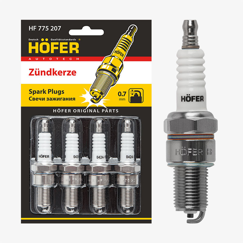 свечи HOFER для а/м LADA 2108-2110 карб. (0,7мм, R, Cu) (блист. 4 шт.) (ан.BPR6ES) HF 775 207