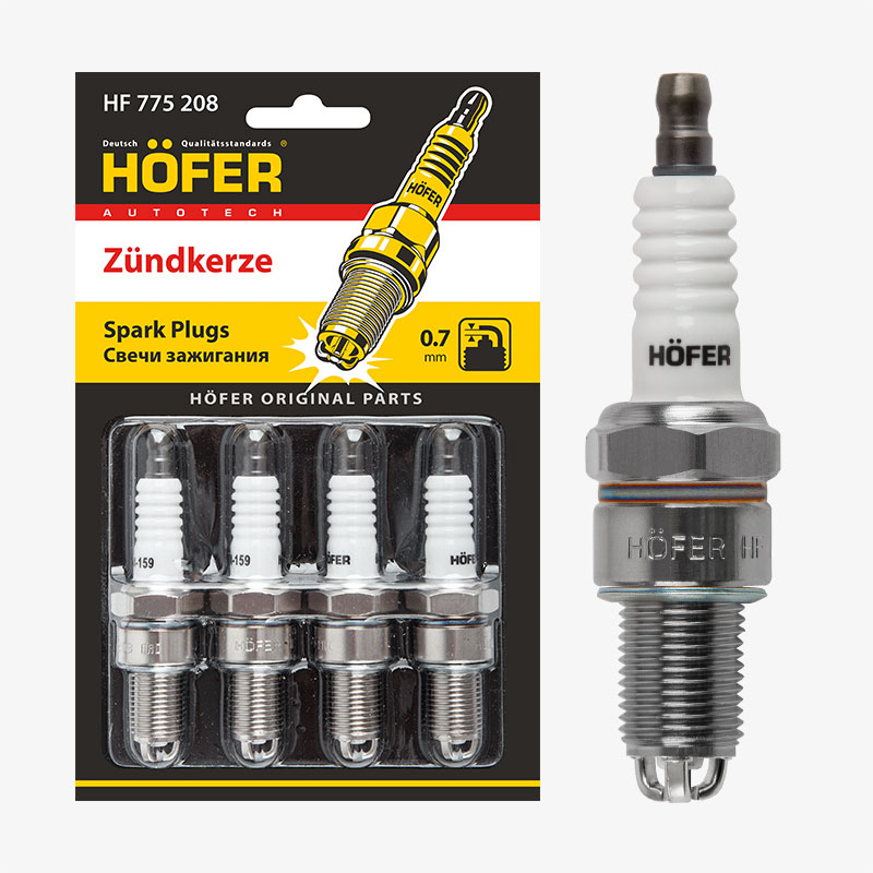 свечи HOFER для а/м LADA 2108-2110 карб. 3-х эл. (0,7мм, R, Cu) (блист. 4 шт.) (ан.BUR6ET) HF 775 208