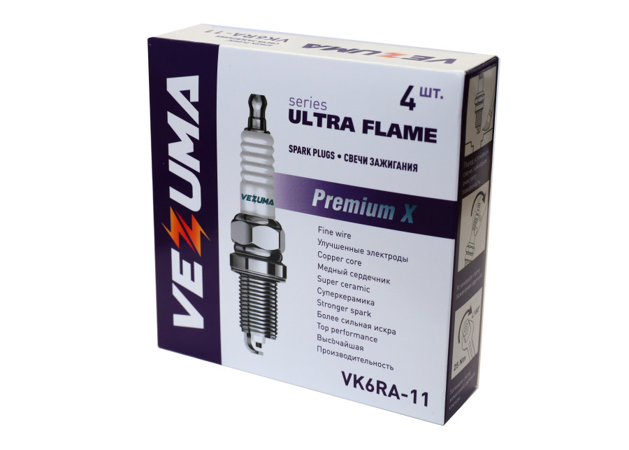 свечи VEZUMA для а/м CHEVROLET / DODGE / HONDA / JEEP / OPEL (упак. 4 шт.) "Premium X" арт. VK6RA-11
