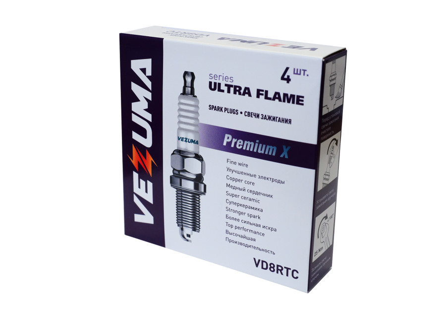 свечи VEZUMA для мото техники YAMAHA/SUZUKI/KTM/KAWASAKI (упак. 4 шт.) "Premium X" арт. VD8RTC