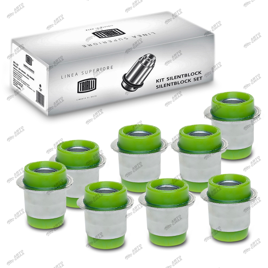 Сайлент-блок TRIALLI 2121 (8 шт.) SB 421 – усовершенствованная модель, отличающаяся еще большей надежностью. Изделие выдерживает высокое давление, перепады температур (от -70 до +110) и механические воздействия. Для соединения компонентов используются надежные адгезивы. При изготовлении соблюдаются принципы прочности, что повышает срок службы компонента.