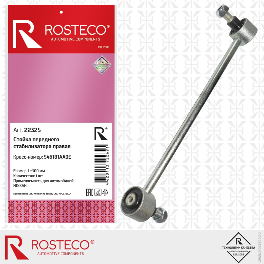 стойка стабилизатора РОСТЕКО для а/м Nissan Qashqai (06-)/X-Trail (07-)/Renault Koleos (08-) перед.прав. в упак. 546181AA0E арт. 22325