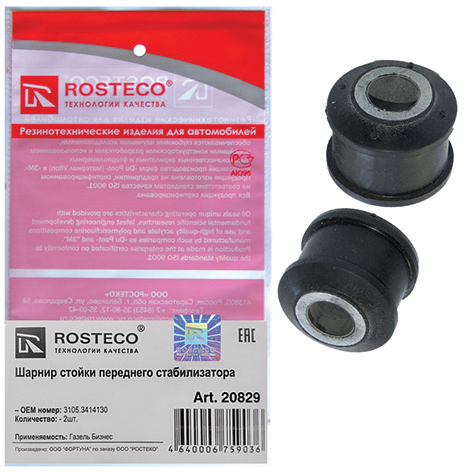 втулка стабилизатора передняя РОСТЕКО для а/м ГАЗ-3302 Бизнес Next в упак. (к-т 2 шт.) 3105-3414130 арт. 20829