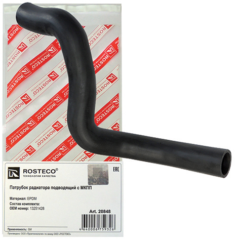 патрубок радиатора верхний GM РОСТЕКО подводящий с МКПП EPDM в инд. упак. 13251428 арт. 20848
