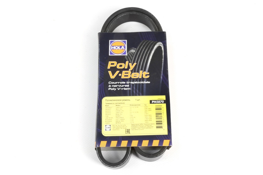 ремень HOLA поликлиновой 5PK870 для а/м CHEVROLET Lanos; DAEWOO Cielo, Espero, Nexia ГУР(-) PH5870