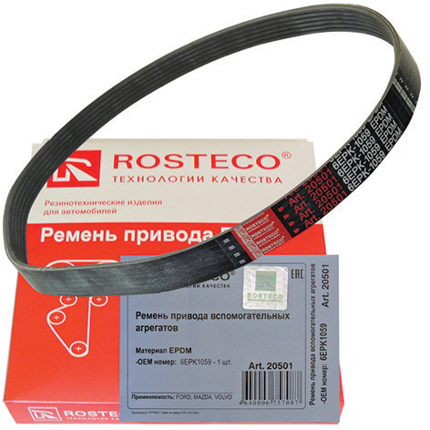 ремень РОСТЕКО генератора FORD в упак. 6ЕРK1059 эластичный арт. 20501