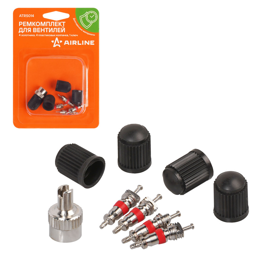 ремкомплект для вентилей AIRLINE (4 золотника, 4 пласт.колп, 1 ключ) в блистере ATRS014