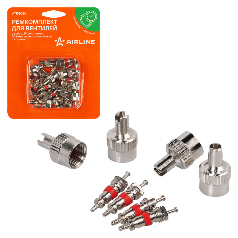 ремкомплект для вентилей AIRLINE в кейсе (20 золотников, 20 металл. колпачков с ключом), блистер ATRS020