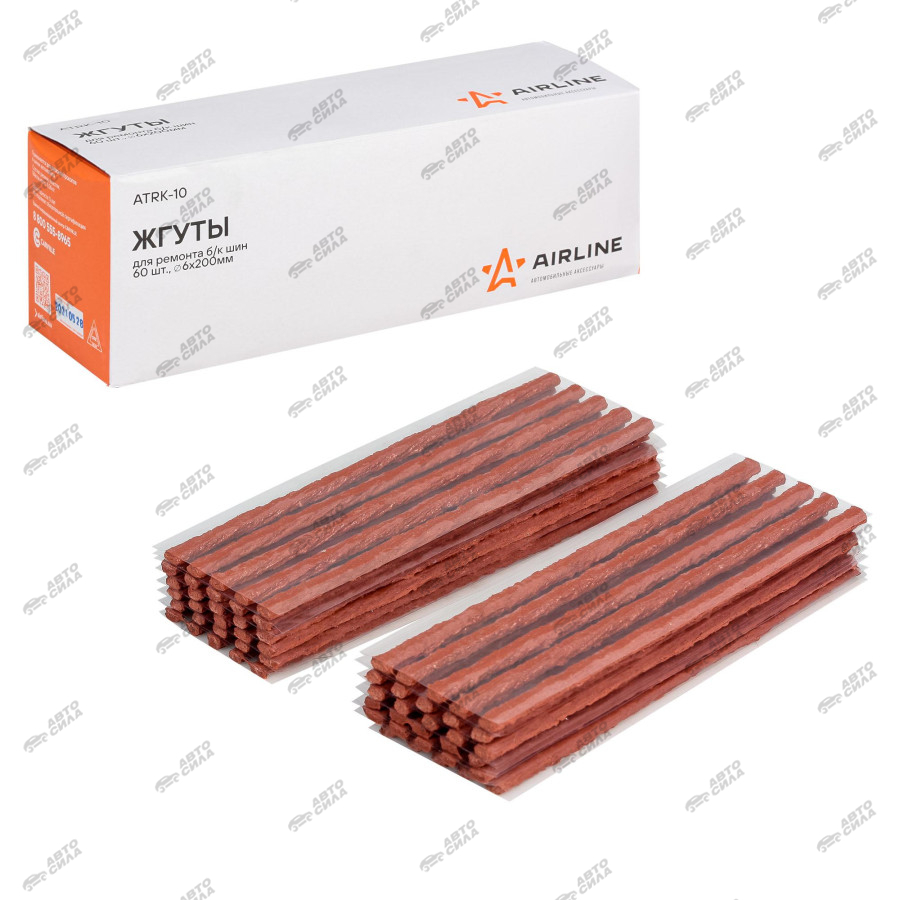 жгуты для ремонта б/к шин AIRLINE 60 шт. армированные в коробке 6х200 мм ATRK-10